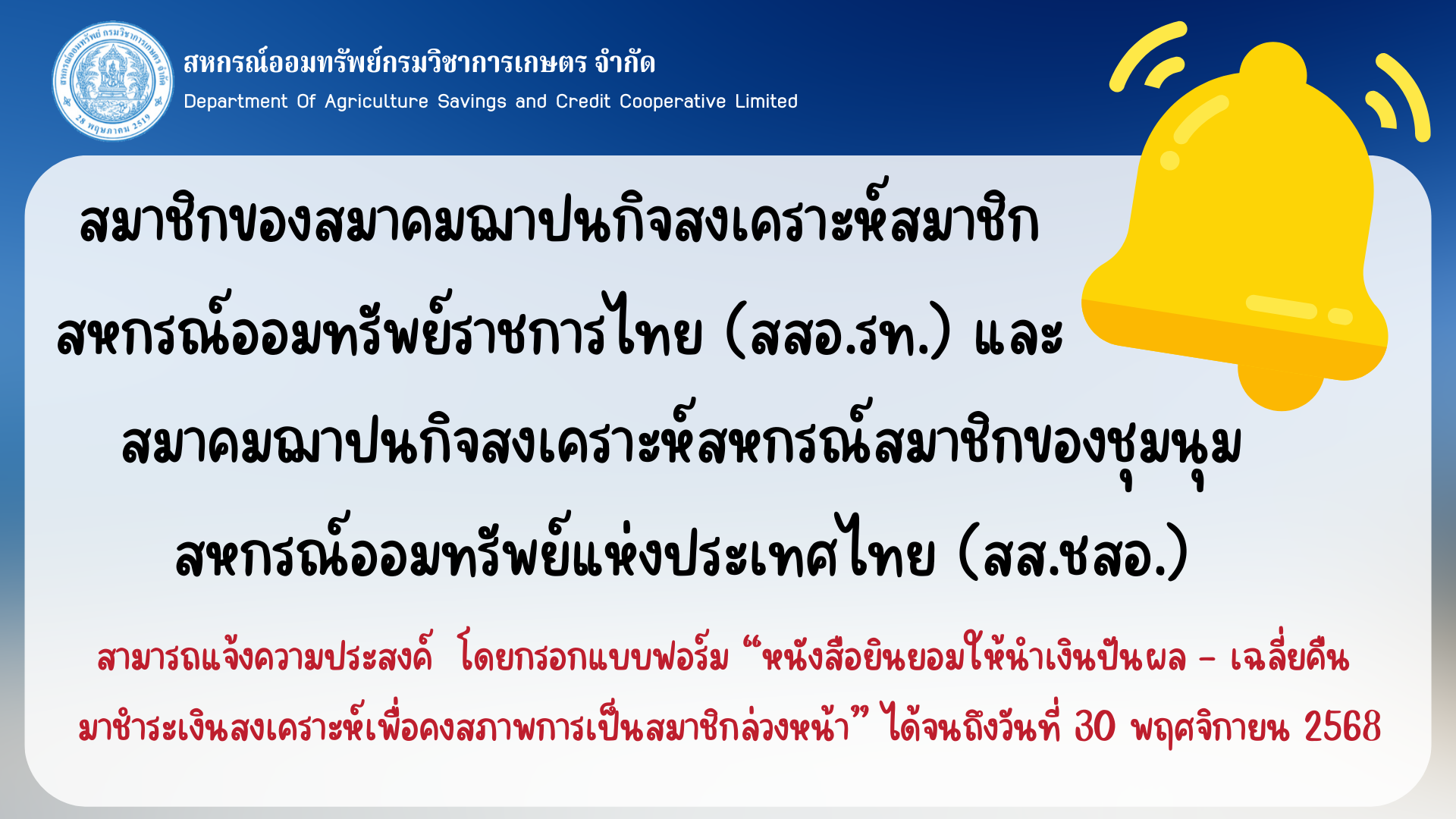 ปันผล-เฉลี่ยคืน หักชำระสมาคมฯ