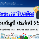 01/12/2025 | ประชาสัมพันธ์ ยืนยันยอดทุนเรือนหุ้น หนี้เงินกู้ และเงินรับฝาก ประจำปี 2568 ยืนยันยอดทุนเรือนหุ้น หนี้เงินกู้ และเงินรับฝาก ประจำปี 2568 Read Post »
