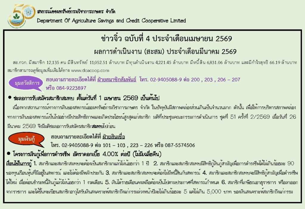 By webmaster doacoop / 23/04/2026 ข่าวจิ๋ว ฉบับที่ 4 ประจำเดือนเมษายน 2569 FacebookFacebookXXLINELine